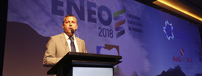 Con este mensaje central el Intendente Juan Manuel Masferrer se dirigió al medio millar de empresarios y representantes del mundo público de O’Higgins que se dieron cita este miércoles en el Encuentro Empresarial de O’Higgins (ENEO) 2018, realizado en el Centro de Conferencias del Casino Monticello y organizado por la Corporación Pro-O’Higgins. Esta tercera versión de ENEO 2018 contó además con la presencia del Ministro de Obras Públicas, Juan Andrés Fontaine.